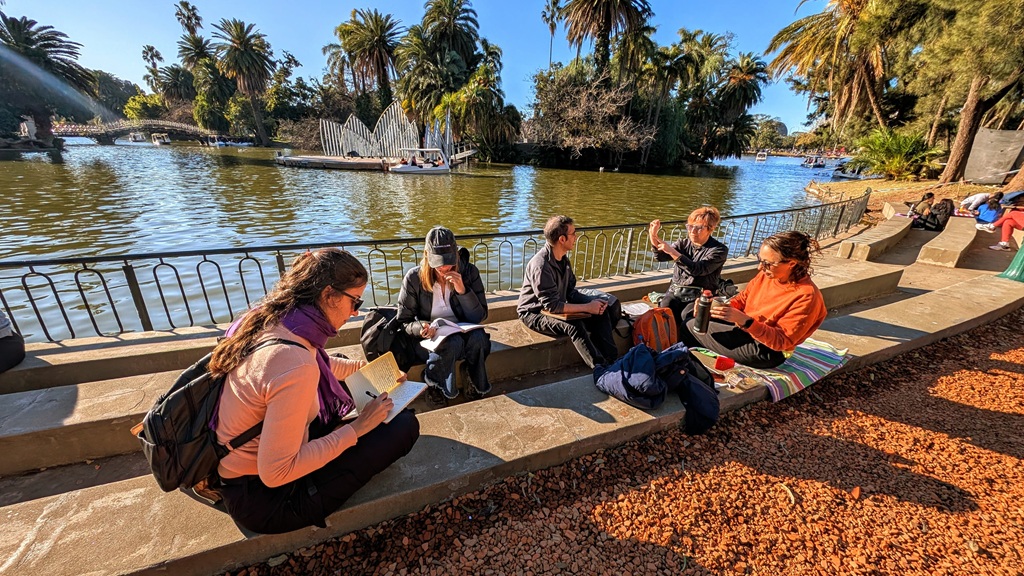 Al terminar de almorzar, algunos se retiraron a desarmar las carpas, acomodar las mochilas y preparar los vehículos, ya que tenían que emprender el regreso a casa temprano y por tener por delante un viaje de muchas horas. Otros se quedaron charlando y unos cuantos aprovecharon el sol para recostarse en el pasto y recargarse de energía.