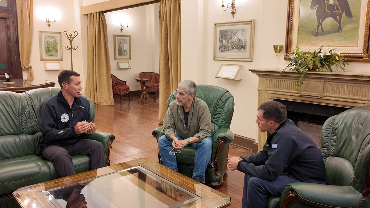 Mayor Ramiro Antoñana (Ejército Argentino), Alex Martin (Presidente del CCAM) y Sargento Primero Diego Alegre (Ejército Argentino). Foto: Natalia Fernández Juárez