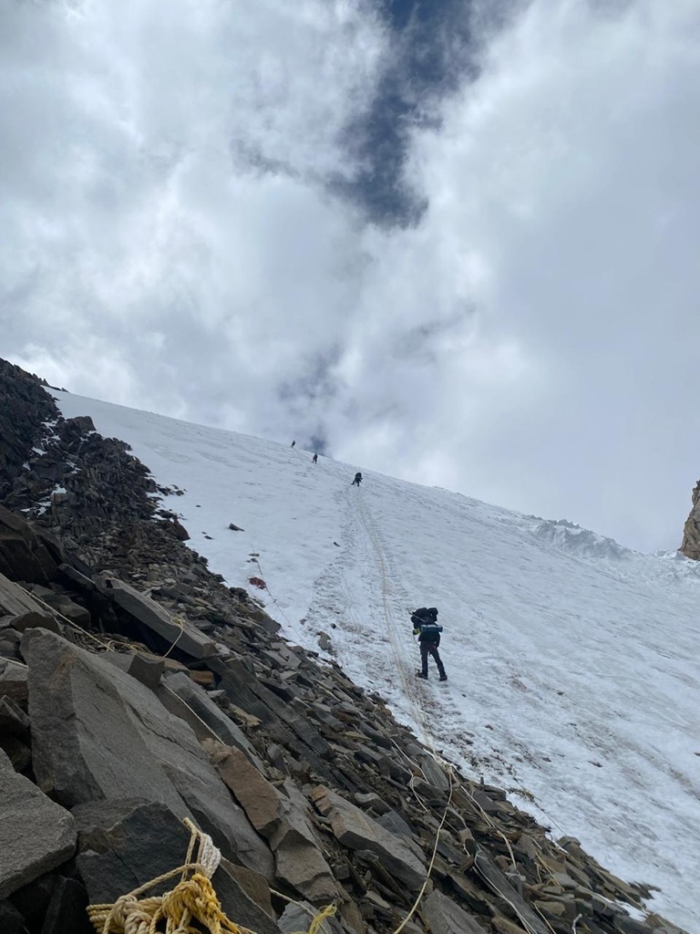 El Kun presentó terreno mixto: roca, nieve y hielo, lo que demandó técnicas específicas: