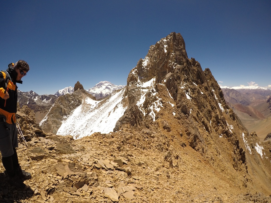 Ya eran las 15 horas; el cielo se había nublado, camuflando con sus nieblas la formidable pared Sur del Mercedario. Debajo nuestro, un punto naranja señalaba el último campamento.