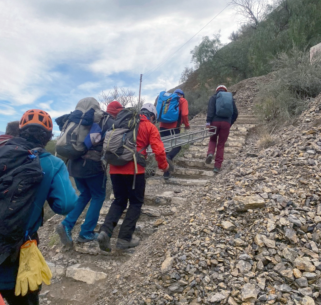 Ya habían colocado el anclaje principal en el punto más elevado y del otro lado habían establecido un "anclaje natural", rodeando las rocas con una soga, que se enganchaba con el cable de acero.